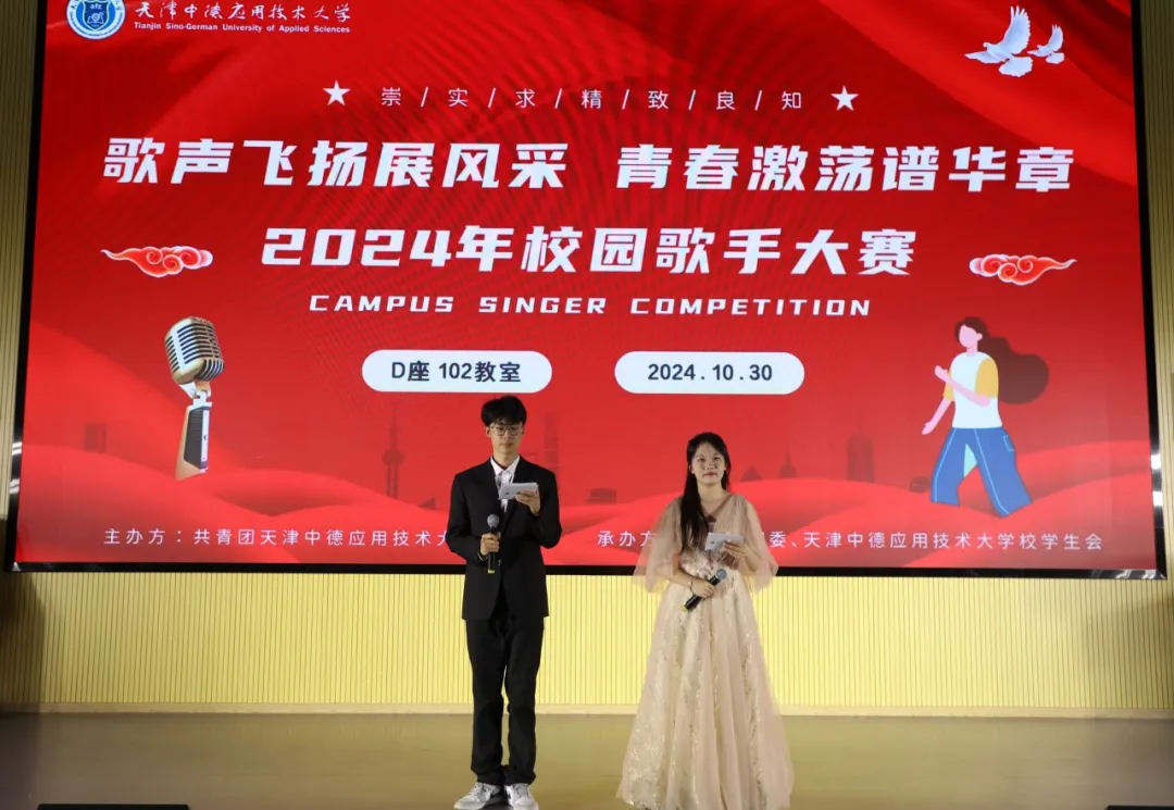 2024年10月30日,由共青团天津中德应用技术大学委员会主办,天津中德应用技术大学各学院团委和天津中德应用技术大学校学生会承办的“歌声飞扬展风采 青春激荡谱华章”校园歌手大赛决赛于D座102圆满成功举办。