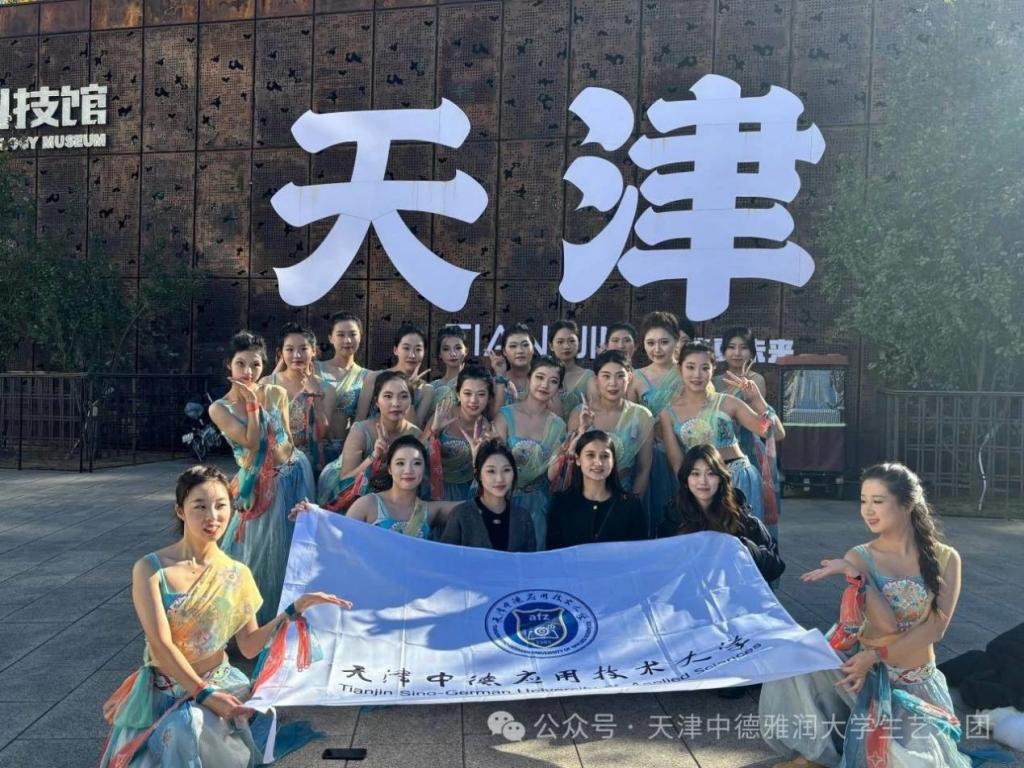 为体现当代大学生美育实践的育人意义,天津中德大学生艺术团舞蹈团于2024年11月4日在天津市华夏未来剧场参加了天津市学校文艺展演。舞蹈团指导教师之一麦合甫热提·哈里木拉提老师也亲自带队比赛,为舞蹈团的同学们加油打气。