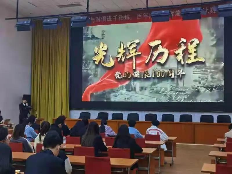 所有选手演讲完毕,在统计得分期间,由权益部部长给我们观看了由人民日报发布的关于建党百年的视频。